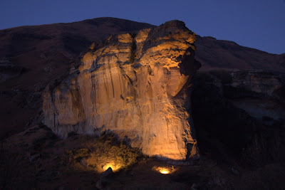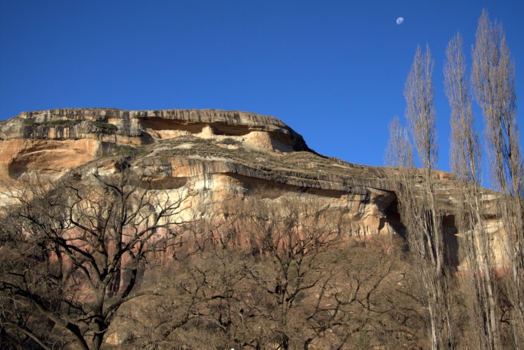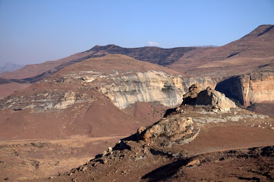 Elegemos como nosso primeiro pouso o Parque Nacional Highland, o qual tem esse nome devido ao fato de se encontrar numa cadeia montanhosa, a qual tem o nome de Maluti. O parque tem 48 Km de extensão com formações de arenito fascinantes. O clima, apesar de estar numa região serrana, é mais ameno que em Joanesburgo. Durante a noite é mais frio, mas durante o dia a temperatura é bastante agradável.