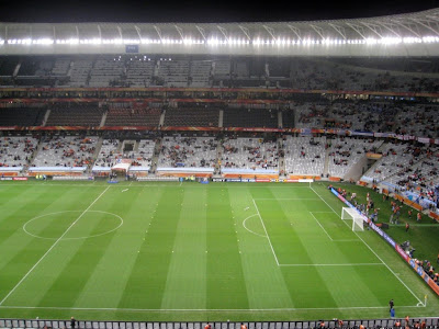 Bom galera, foi bem diferente ir ao estádio na Copa do Mundo assitir a um jogo que não era da seleção brasileira, mas ao mesmo tempo pudemos apreciar todo o evento sem estarmos emocionalmente ligados a ele. O jogo entre Uruguai e Holanda foi cheio de ação desde o início até o apito final.