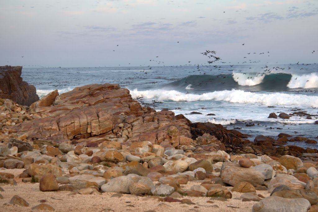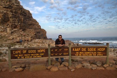 Continuamos nosso passeio até o Cabo da Boa Esperança. Estar neste lugar é como reviver nossas aulas de história. O então conhecido Cabo das Tormentas, devido as fortes ventanias, recebeu o nome de Cabo da Boa Esperança em 1488 pelo rei de Portugal, D. João, já que o mesmo acreditava que o novo nome traria bons presságios para a rota até as Índias. Um funicular nos leva a um mirante no topo de Cape Point, a aproximadamente 300 metros de altura, onde podemos ver o atual farol construído durante a Primeira Guerra Mundial. Muitos acham que o ponto de encontro dos oceanos Atlântico e Índico fica em Cape Point, mas na verdade é em Cape Agulhas a quase 200 Km.